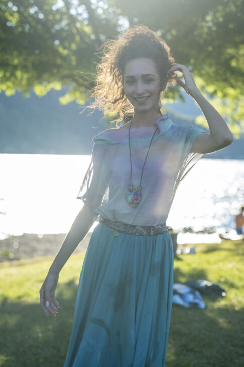 A volte, infatti, capita di prendersi una pausa dal calcio, che professionistico o dilettantistico, grande o piccolo è pur sempre la ragione di vita di molti di noi che parliamo il dialetto di Gioppino e sicuramente di Bergamo & Sport da sempre, ritrovando conterranei a tenere alta la nostra bandiera anche oltre cortina. Sofia Andreani da Bergamo città, Gaia Brandolese accompagnata dalla mamma stilista-sarta artigianale Jorida Bregasi allieva di Luisa Scivales con esperienze al Red Carpet veneziano, e Sara Valsecchi entrambe da Cisano Bergamasco, da cui si sono mossi anche papà Leonardo, un luminare dell’ortopedia, e mamma Monica Rosa, più l’altra che confeziona vestiti su misura per far tenere la bocca spalancata ai presenti, un mix di locali e bergamaschi da tifo sfrenato, l’albinese Simona Brena di Kima Design, campionessa dei tessuti organici e biologici che ha arricchito la collezione Nomade (all’insegna del binomio viaggi & natura) con un tocco del pittore conterraneo Giovan Battista Moroni, accompagnata dalle collane a cuore di Valentina Violante de “L’Attimo di un Battito”, in miniatura in resina realizzati a mano, tridimensionali o piatti, studiati con Angelo Delia e impreziositi da illustrazioni di Valentina. A ideale suggello del connubio con Brescia per il 2023 da vivere da capitali italiane della cultura, le splendide creazioni di Patrizia Concari, dalla Leonessa d’Italia oltre i confini comunitari per promuovere un messaggio di amicizia nel nome del bello.