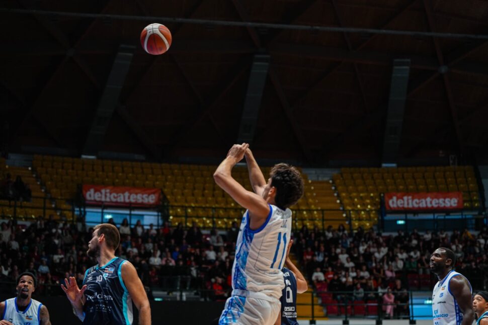 “Abbiamo fatto a sprazzi cose buone e in altre delle sciocchezze madornali, ci succede in questo periodo in cui dobbiamo trovare un po’ la quadra, come tutte le squadre in questo periodo. Il bello è vedere che questi ragazzi ci tengono e danno tutto e questo fa ben pensare per il prosieguo della stagione, per cui ho sensazioni positive. Mi e’ piaciuta la nostra voglia di reagire anche dopo errori, questo è un ottimo segnale. Giochiamo in dieci, ogni partita c’è spazio per tutti, anche i giovani stanno crescendo. Non era facile mentalmente questa partita, era la prima in casa, dopo la sconfitta a Pistoia, in un palazzetto che non conoscevamo e abbiamo piacevolmente scoperto: è bellissimo questo palasport, dove non avevo mai avuto modo di giocare, di certo uno dei più belli che ho trovato. E’ stato bello giocare qui: ora speriamo un po’ alla volta di portare più gente possibile per riempirlo”.