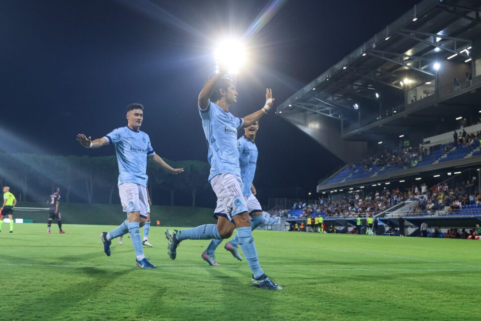 Una spizzata a lato dell’apripista seriano sugli sviluppi del terzo angolo controcrossato da sinistra e la medesima catena ospite la fa giusta, con l’autore del fallo da rigore a innescare l’assist volante di Mignanelli quando il campo sta finendo per la zuccata tociana da rimbalzo sul terreno prima di schizzare verso l’angolo alto. A recupero già iniziato, la seconda chiamata di Lopez quando Burrai stoppa col braccio il tiro di Giannini a rimorchio dalla punizione da destra del suo regista, ma il direttore di gara dice no. Preludio al patatrac con l’assistman del pari nero-rosa a indurre Potop alla respinta in gioco aereo ben controllata da Agosti, che controlla e batte Baldi nell’angoletto. Due errori in uscita di troppo.
