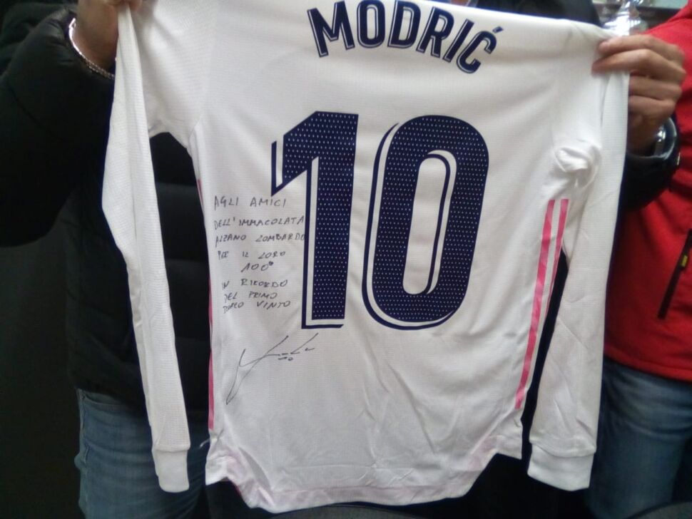 ALZANO LOMBARDO – Il gonfalone in sede assomiglia al blasone di una stirpe principesca: “Oratorio maschile Immacolata – Football Libertas – Alzano Maggiore 1921”. Bianco panna tendente al crema, un giglio come stemma. Testimone di una storia partita dal basso per arrivare all’apice, col Merengue sulle spalle. La maglia numero 10 con dedica regalata da Luka Modric ha scoperchiato un mondo sempre stato in realtà alla luce del sole: “18 su 24 della prima squadra, in Seconda Categoria, sono nati e cresciuti nel vivaio. Numeri che svelano la missione al servizio della comunità, abbiamo tutte le squadre dai più piccoli ai grandi”, esordisce Luca Buzzetti, classe 1980, presidente dal 2019. Mercoledì scorso, l’amico di gioventù ritrovato, anche se col distanziamento non è stato possibile riabbracciarsi, l’ha fatta un po’ grossa. Assistman del ko dell’Atalanta in Champions: “Al ritorno magari ci regala il pallone, anche se vorrebbe dire tripletta: se la Dea vince 5-3, passa e va bene lo stesso”, scherza ma non troppo. 24 anni fa, quassù, Luka alzava il suo primo trofeo, da miglior giocatore, negli Esordienti: “In paese ci guardano sbalorditi: ‘Ma cosa avete fatto?’. Non ce lo aspettavamo nemmeno noi”, sorride il vertice societario bianco & verde. Il calcio all’ombra dei campanili incarna lo spirito più puro del dilettante che fa dello sport la massima espressione della socialità: “L’oratorio è famiglia e accoglienza. Poi capitano i predestinati. Io ho giocato con Luca Percassi, l’altro destinatario della maglia speciale, fino al suo passaggio all’Atalanta, eravamo compagni di classe e a 8 anni mi convinse ad andare al campo: lui centrocampista avanzato, dal carisma silenzioso che ha confermato da superdirigente atalantino, io attaccante. E ho allenato un’azzurra, Lisa Alborghetti, attuale capitana dell’Inter”. L’asso croato del Real Madrid è in buona compagnia, insomma: “Coltivavamo l’idea di regalargli la maglia del centenario fin dal sorteggio. Dandoci la sua, lui ci ha fatto l’onore più grande: ha dimostrato l’umiltà di chi non si dimentica da dov’è venuto. Dobbiamo ringraziare la responsabile comunicazione dell’Atalanta Elisa Persico, il giornalista Giambattista Gherardi che s’è interessato, Antonio Bucci figlio di Natale, il compianto vicepresidente, zaratino come Modric che però veniva dalle montagne ed era un profugo di guerra, Maurizio Mangili e il presidente di allora Marco Marchesi”.