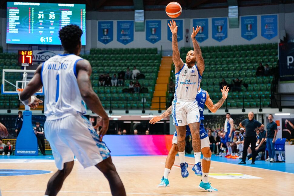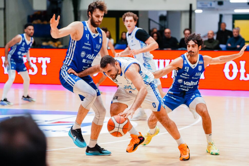 Ma determinanti sono stati anche i canestri dell’ex di turno D’Angelo Harrison, 20 punti, e di Gabriele Stefanini, 17, in una giornata in cui la squadra di coach Alessandro Ramagli aveva le rotazioni accorciate per le assenze del capitano Bossi e dell’ala alta Lombardi.