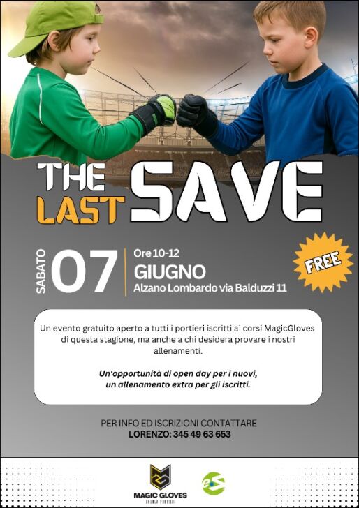 È previsto per sabato 7 giugno, dalle ore 10 alle 12, l’appuntamento con “The Last Save”, Open Day della scuola portieri Magic Gloves. L’evento, a titolo gratuito, si svolge presso il campo dell’oratorio dell’Immacolata di Alzano Maggiore, in via Monsignor Balduzzi 11, e si propone come occasione formativa e gratuita aperta sia agli iscritti che ai nuovi interessati, offrendo la possibilità di partecipare a un allenamento completo e strutturato secondo il metodo della scuola.