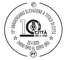 I due annulli, realizzati nel formato tondo, riproducono il logo ufficiale del 10° Anniversario del comune di Orio al Serio e un libro aperto, quale simbolo che custodisce la ricchezza del sapere.