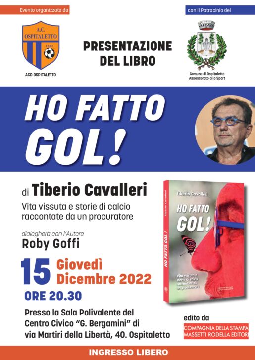 Ospitaletto (Bs) – Giovedì 15 dicembre, alle ore 20:30, si terrà la presentazione del libro “Ho fatto gol!” edito dalla Compagnia della Stampa, presso la sala polivalente del Centro Civico “G. Bergamini” di via Martiri della Libertà, 40 a Ospitaletto.