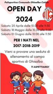 Polisportiva Ghisalba Calcio, ecco tre open day per i nati nel 2017-2018-2019 16 Aprile, 2024 Di seguito la locandina dell’evento: