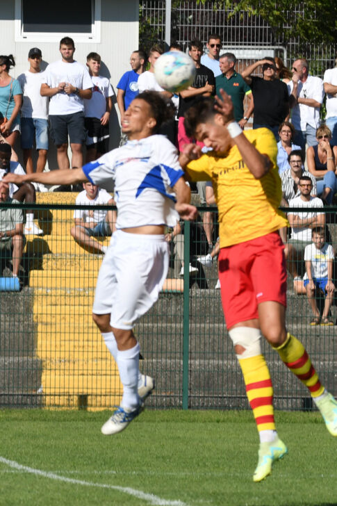 In chiave seriana le sfuriate dal 19′ al 27′, rintuzzate per lo più dall’attento e reattivo Bassi. Muzio in corsa sbatte sullo stesso centrale di Roccafranca, Piccoli sferra la rasoiata dritta a lato del primo palo appoggiato da Angeloni sul cross di Milesi, Toccafondi in corsa la alza da pochi passi senza sfruttare la respinta di Cerini in gioco aereo per anticipare Toma sull’invito dal fondo ancora del laterale adattato e, infine, ancora la mezzala destra ricevendo dall’omologa di sinistra (una punta riciclata) e l’albanese in tap-in trovano un ostacolo insormontabile nel portierino in Blu.