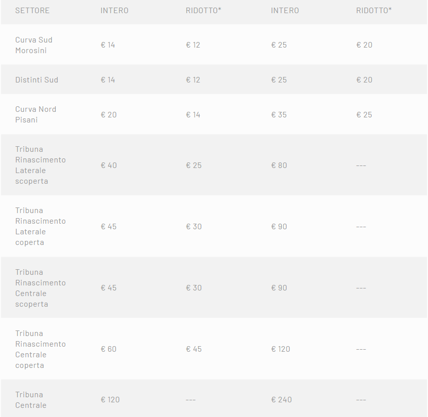 Il club non defletterà dai princìpi utilizzati in occasione del match coi felsinei di sabato 28 agosto alle ore 18.30. Resta anche l’obbligo delle mascherine, oltre al controllo della temperatura all’ingresso. Disponibile la Curva Sud in attesa dell’inizio dei lavori di demolizione e ricostruzione del settore, non prima di gennaio 2021. Contro il Bologna, prelazione per abbonati, in digitale su Dea Card e in modalità print@home (per possessori di abbonamenti tradizionali ex voucher), dalle ore 10 del 23 agosto alle ore 23 del 25; dalle 10 del 26 agosto alle 18.30 del 28 (fino alle 19 del 27 per gli ospiti), invece, la vendita libera. Ridotti previsti per Over 65, donne, Under 18 e invalidi oltre il 75 per cento. Qui sotto, lo specchietto riassuntivo dei prezzi al netto delle commissioni per la vendita libera sul circuito: vale l’account di registrazione, in biglietteria non si vende più alcunché.