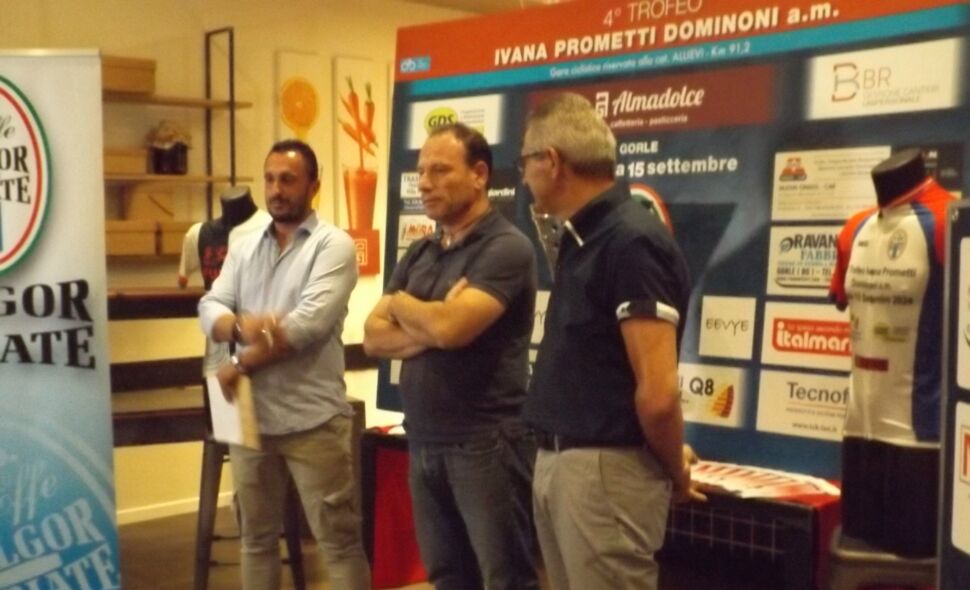 Nella serata del 5 settembre presso Almadolce raffinata caffetteria e pasticceria di Gorle la Gi-Effe Fulgor ha presentato il 4° Trofeo Ivana Prometti Dominoni a.m. gara riservata alla categoria Allievi di Km 91,2 in programma domenica 15 settembre con partenza presso il centro sportivo di Gorle. Ha fatto gli onori di casa il presidente Fiorenzo Nava affiancato dal vice Stefano Ravanelli che ha curato una presentazione in grande stile. Il primo grazie al titolare Dante, poi alle amministrazioni comunali rappresentate da Nicola Bresciani (Gorle) e da Ester Pedrini (Seriate), il percorso passerà nel centro di entrambi i paesi. Un grazie allo sponsor Antonio Dominoni affiancato dal figlio Manuel che ha ringraziato tutti gli sponsor. Un saluto dal presidente provinciale Claudio Mologni che ha ricordato la necessità di curare la sicurezza sulla strada. A questo proposito la gara avrà la presenza di due ambulanze, due medici, circa 75 persone lungo il percorso, 12 moto staffette. Aldo Epis ha ricordato i numeri attuali delle iscrizioni, 112 atleti in rappresentanza di 17 società, ma altri sono ancora attesi. Presenti anche Basilio Busetti responsabile dei Giovanissimi, Patrizio Lussana per la Hertz,, Patrizio Donati segretario della Fulgor. Il rinfresco apericena ha chiuso la serata in compagnia tra i tanti amici e simpatizzanti della Fulgor. La novità sarà anche la maglia dedicata che verrà indossata dal vincitore. Per i corridori bergamaschi presenti la gara sarà valida per il Memorial Donati che premia ogni anno l’Allievo bergamasco che raggiunge il miglior punteggio complessivo. Appuntamento a Gorle domenica 15 settembre per una gara di livello sempre più alto.