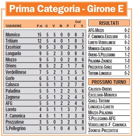 Valcalepio-Nembrese 2-2: 12′ pt S. Marcassoli (N), 18′ pt Carrara (V), 40′ St Rondi (N), 47′ St Sora (V)