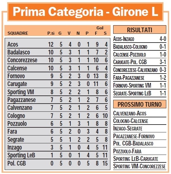 Concorezzese-Calvenzano 0-3: 22’st. Di Lascio (Ca), 41’st. Albani (Ca), 46’st. Albani (Ca)