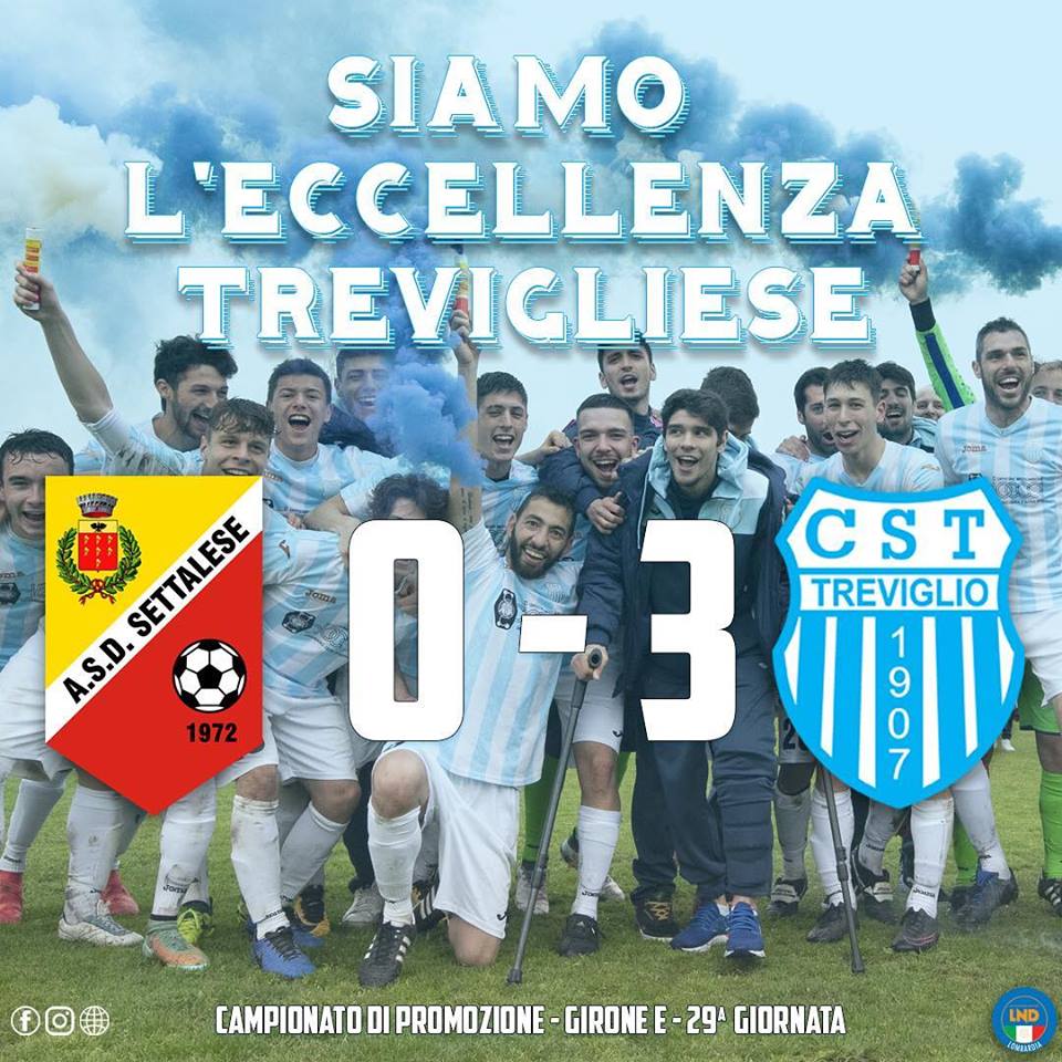 Sua Eccellenza la Trevigliese! La squadra di mister Redaelli domenica 14 aprile ha vinto il proprio girone e, dopo un anno di purgatorio in Promozione, è ritornata in Eccellenza diventando la squadra lombarda con più presenze nel campionato inferiore alla D. Il sogno è diventato realtà con una giornata di anticipo grazie alla vittoria contro la Settalese che porta i biancocelesti a quota 66 punti, sempre più primi e sempre più distanti dalle rivali, le tanto temute Sant’Angelo e BassoPavese ora distanti ben nove punti. Il condottiero di questa squadra è mister Redaelli, più che soddisfatto dopo la vittoria (“Questa è una festa davvero biancoceleste, il trionfo di un gruppo fantastico”), assoluto protagonista di questa Trevigliese bella e vincente insieme al suo staff, dal vice Maridati al preparatore dei portieri Prola, dal preparatore atletico Cavalleri al massaggiatore Caverzaghi al magazziniere Legnani. Un plauso va anche alla società, brava a ripartire dopo la delusione della scorsa stagione e a ritornare in Eccellenza dopo un solo anno di purgatorio. Buona la prima per il nuovo presidente Bergamini, numero uno della Trevigliese da novembre, sempre presente alle partite accompagnato da chi questa squadra blasonata l’ha fatta grande quest’anno, cioè lo storico vicepresidente Redaelli, il DS Sarti, il team manager Molteni e tutto il consiglio direttivo. E ora la standing ovation va ai giocatori: mister Redaelli l’ha sempre detto, la Trevigliese aveva il miglior gruppo del girone e aveva ragione. Dopo ogni partita i giocatori si trovavano a centrocampo, uniti e decisi verso lo stesso scopo, pienamente raggiunto domenica scorsa.