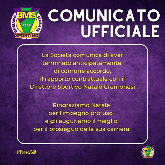 Promozione, novità al BM Sporting: torna Castellazzi, salutano Cremonesi e lo storico direttore Enzo Caroppi
