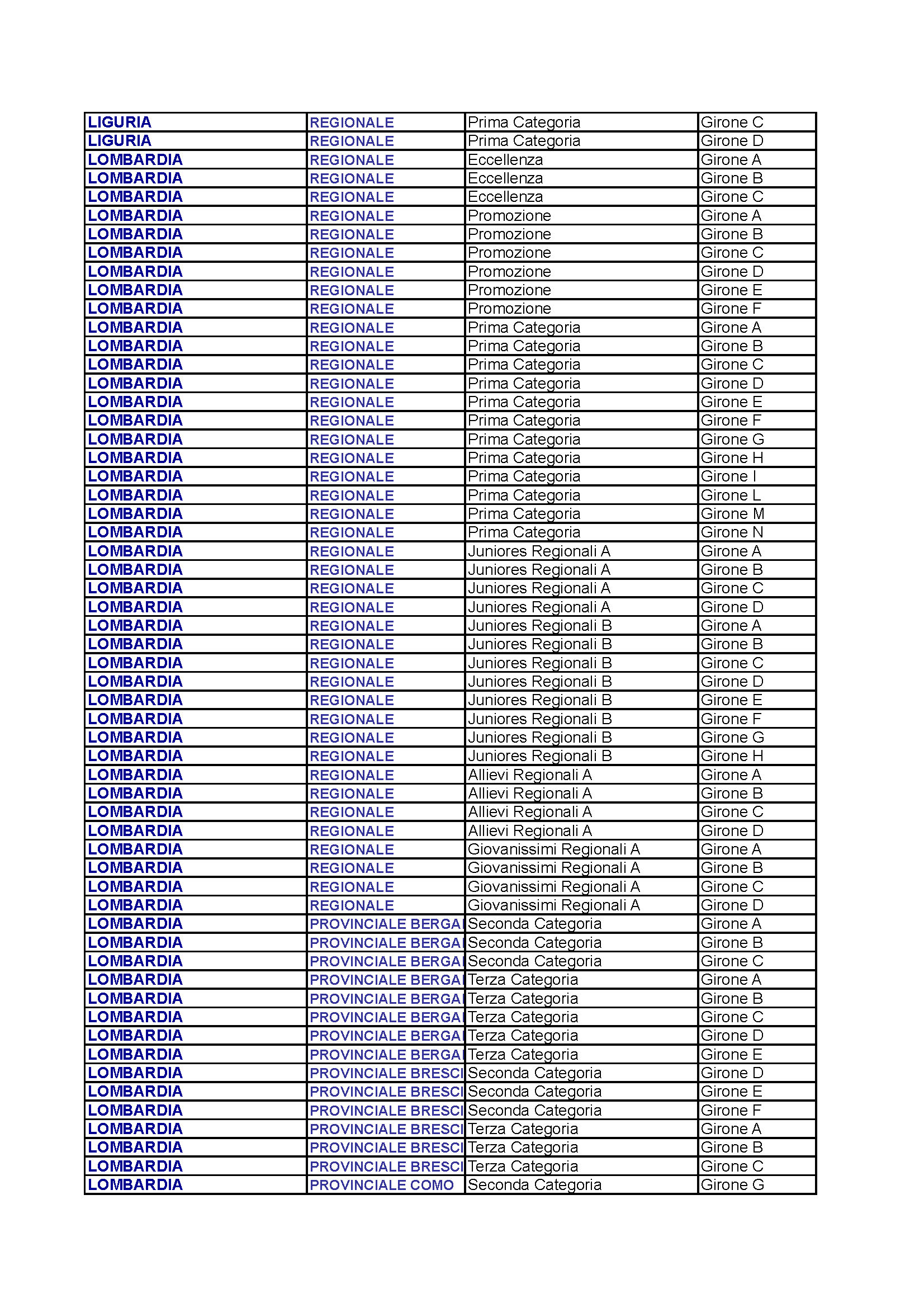 Ed ecco qui la lunga lista dei campionati disponibili