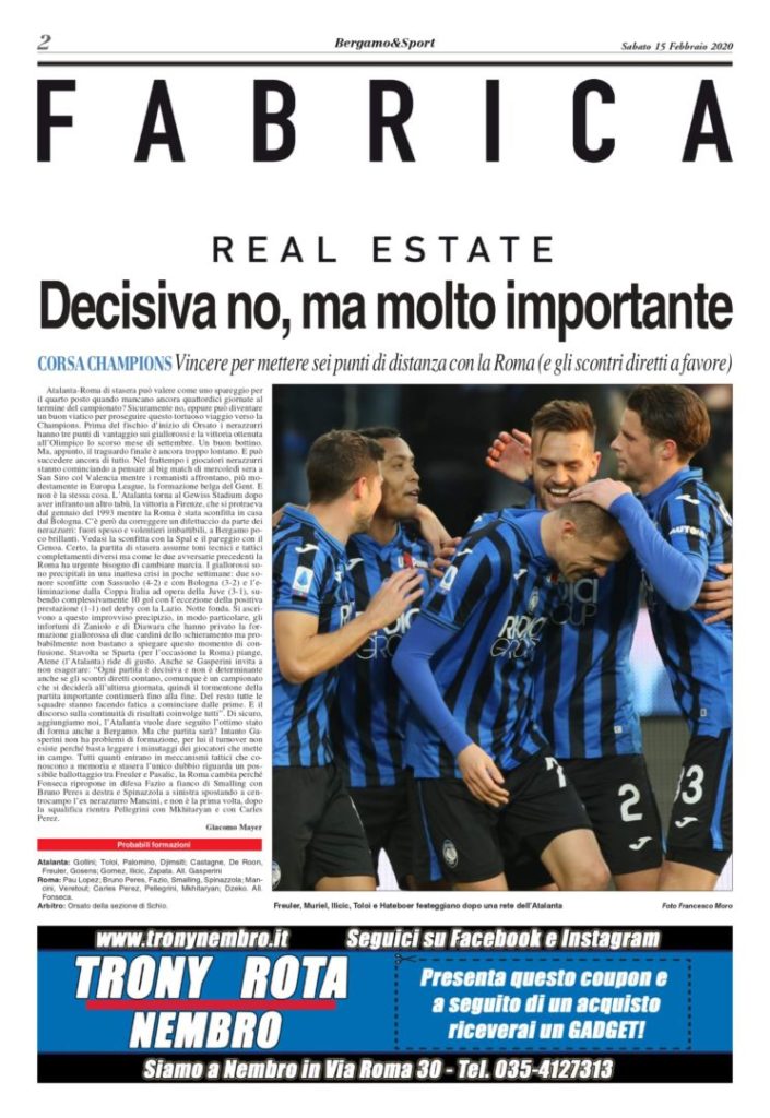 Questa sera c’è la Dea: contro la Roma a caccia di un allungo Champions! Qui il pdf di Bergamo & Sport Stadio, il giornale che distribuiamo allo stadio