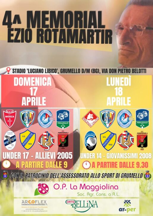 La Real Calepina ufficializza la quarta edizione del Memorial ‘Ezio Rotamartir’ che si disputerà a Grumello tra Pasqua e Pasquetta. Il comunicato della società di Grumello del Monte, Telgate e Chiuduno: