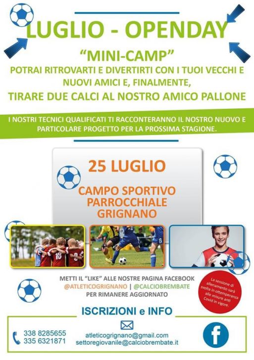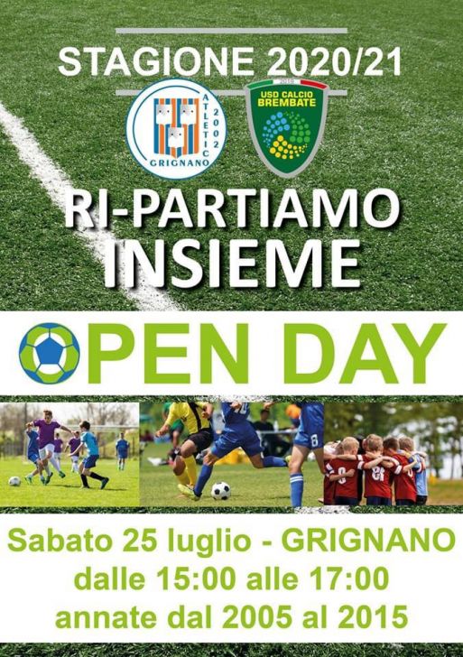 Ri-partiamo insieme, questo il motto dell’open day che si terrà sabato 25 luglio dalle ore 15 alle 17 al campo sportivo parrocchiale di Grignano, un mini-camp per la presentazione del progetto per la prossima stagione.
