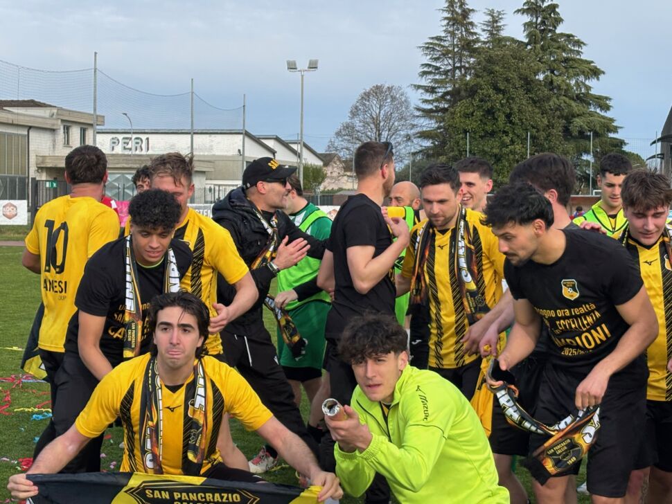 Domenica pomeriggio è scattata la festa sul campo dell’Asola, nel mantovano, dove il San Pancrazio – con il successo 2-0 sulla compagine biancorossa firmato dai bomber Lera e Lizzola – ha finalmente potuto gioire per la vittoria di un campionato (quello di Promozione Gir. E) letteralmente dominato, dall’inizio alla fine. Primi, ed irraggiungibili dalle squadre competitor, volando in Eccellenza con ben 4 giornate di anticipo dal termine.