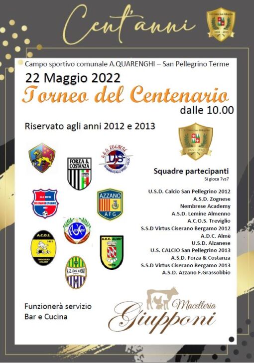 Il weekend del San Pellegrino sarà un condensato di speranze ed emozioni. Si parte sabato pomeriggio con il playoff che vedrà opposta la formazione di Roberto Rota alla Colognese e si prosegue domenica mattina (inizio ore 10) con il primo torneo del Centenario, che vedrà dodici squadre ai nastri di partenza. Servizio su San Pellegrino – Colognese e info sulle altre iniziative del San Pellegrino per festeggiare il secolo di vita nell’edizione di “Bergamo & Sport” in edicola lunedì 23 Maggio.