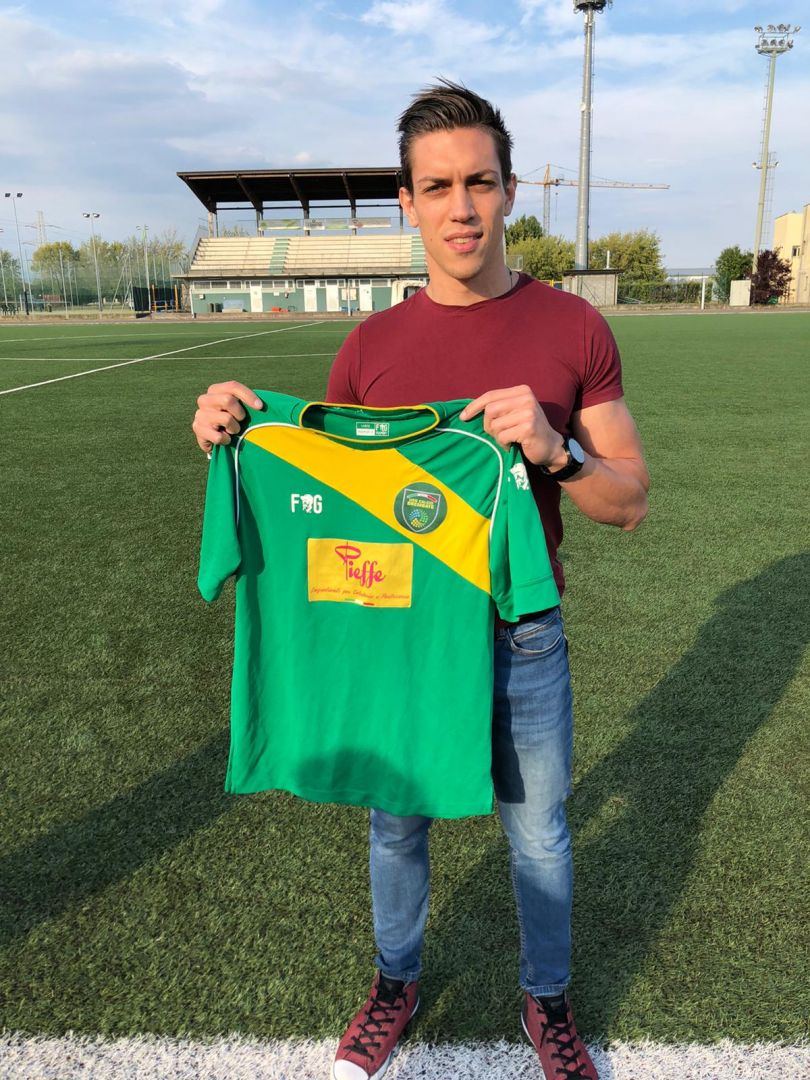Cristian Caffarello posa con la maglia del Calcio Brembate (in copertina foto di rito per Ripamonti)