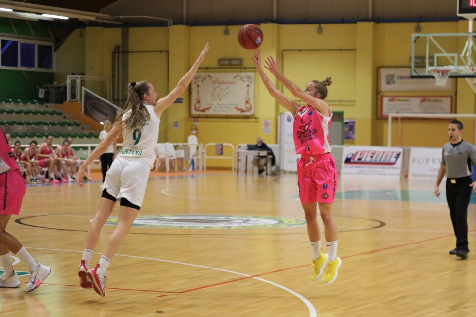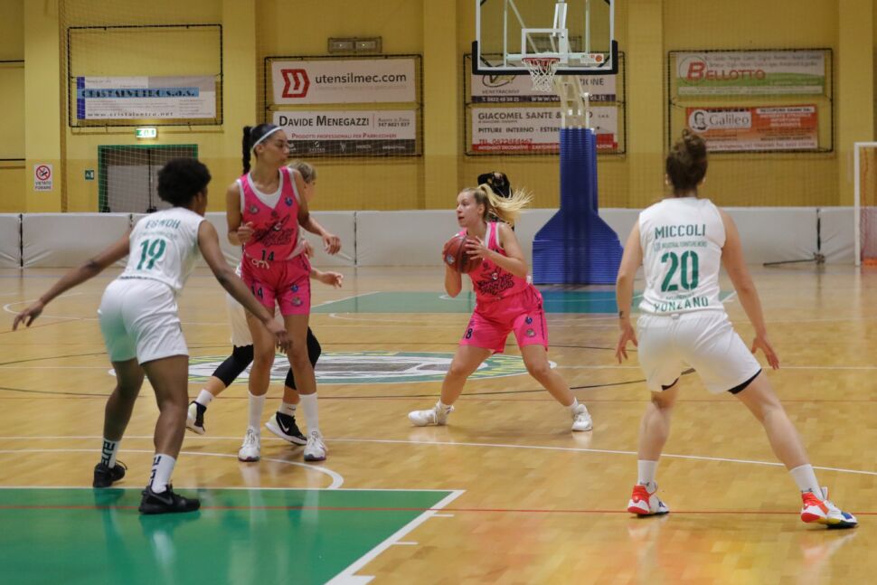SCHIAVON PONZANO: Rossi, Giordano 16 (4/8, 2/3), Bianchi 1 (0/3 da 2), Leonardi 11 (3/5, 1/5), Carraro 3 (0/1, 1/1), Celani, Egwho 3 (1/9 da 2), Miccoli 17 (6/13, 0/1), Zitkova 17 (4/13, 1/4), D’este 1 (0/1 da 2) – Allenatore: Zanco N.