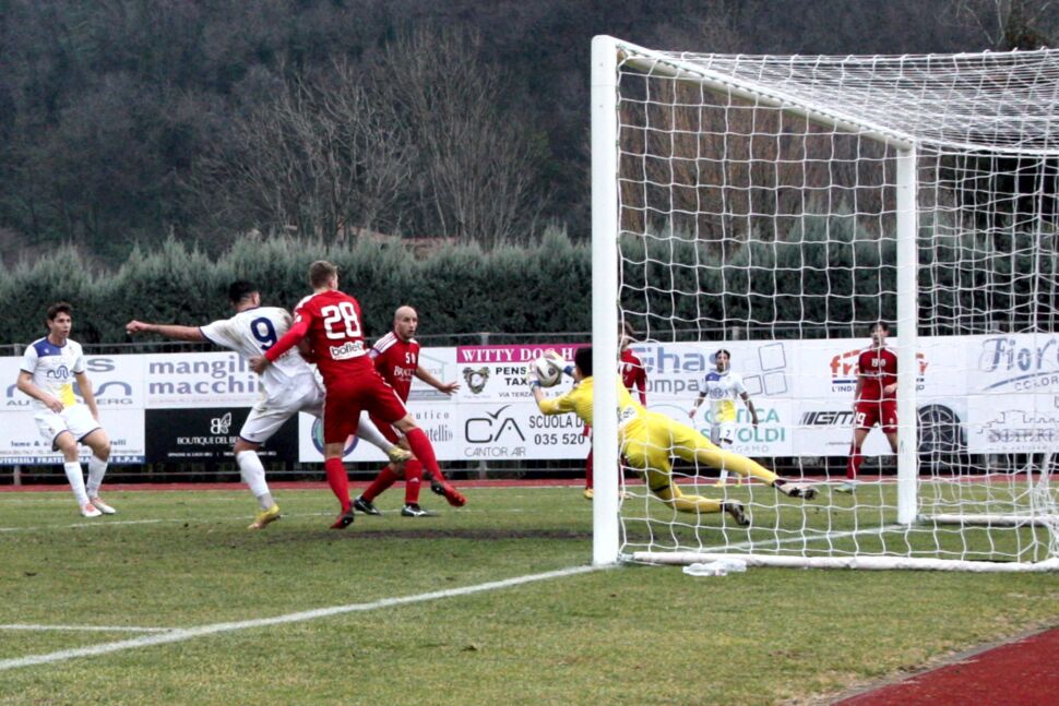Al 29’ un errore di Messina costringe Aceti all’uscita che viene giudicata giustamente da calcio di rigore, sulla palla va il solito Ferrario che buca la porta di Aceti. Una rete nata da un errore pesante della difesa gialloblù. Al 34’ episodio dubbio in area ospite: Zorzi attera Castelli in area, un calcio di rigore non concesso al Brusaporto. Una decisione discutibile del direttore di gara.