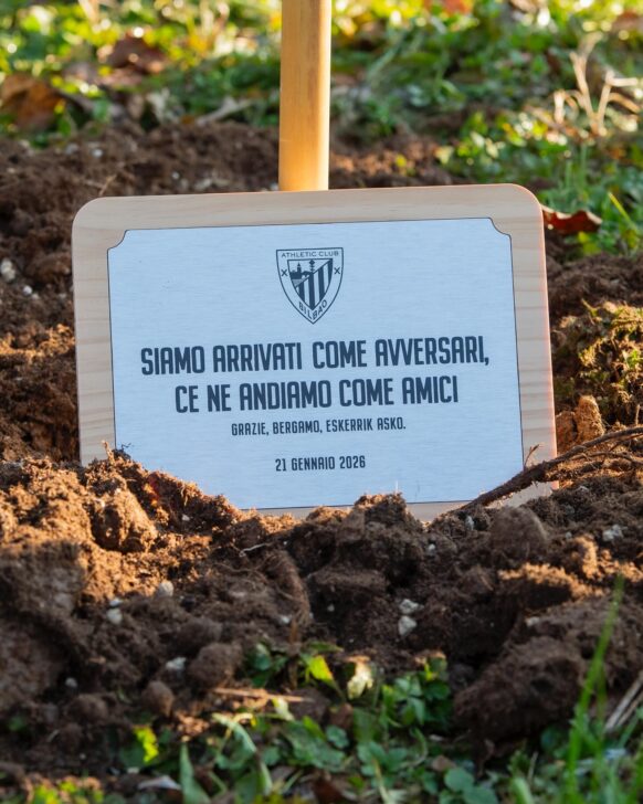 “Siamo arrivati come avversari, ce ne andiamo come amici”, recita la targa, divelta anche quella, apposta la mattina della sfida di Champions League. Un paletto, un seme del Gernikako Arbola nel bel mezzo del Parco Goisis, e un messaggio certamente sconfessato dall’atto di uno sconsiderato, forse figlio della frustrazione come della volontà di compiere un vandalismo.