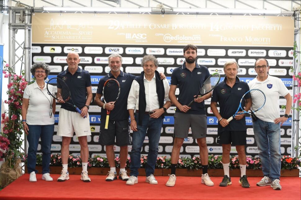 Spazio subito prima alle donne della serata, che hanno visto anche la presenza dei due figli di Giacinto Facchetti al quale è dedicato il torneo singolare A, Barbara e Luca. In prima fila l’inviata Chiara Squaglia, in campo per la prima volta nel padel. “Come sempre solidarietà e sport sono un connubio perfetto – ha spiegato l’inviata di Striscia -. Nella mia vita mi sono abituata a fare di tutto, dalla ginnastica artistica a pallavolo, danza e sci. I miei colleghi mi hanno coinvolta ed è bello scendere in campo per questa lodevole mission dell’Accademia. E’ la mia prima volta con il padel, quindi una Solidarietà che varrà doppia. Il più spiritoso? Il Gabibbo, cosi non faccio torto a nessuno. Forza sport, forza solidarietà, ci mettiamo in gioco in tutti i sensi!”. Il padel ormai spopola dappertutto e anche tra gli uomini di spettacolo è diventato una moda, come hanno mostrato Lorenzo Beccati e Jimmy Ghione. “Abbiamo risposto all’invito di Giovanni Licini, siamo portatori sani di padel e di tennis: qua c’è un grande pezzo di Striscia che ancora una volta ha risposto presente nel nome della Solidarietà”. Insieme agli autori Massimo Di Nunno e Carlo Sacchetti, c’è stato anche il gradito ritorno tra gli amici dell’Accademia di Moreno Morello. “Finalmente si torna a giocare, ma l’Accademia non è mancata quando c’era bisogno – spiega Morello -. Lo sport era fermo, ma l’accademia si è data da fare e da casa l’abbiamo tenuta d’occhio. Ho aumentato il tasso tecnico anche se ho perso lo stesso: una fortuna esser riusciti a trovare una location come questa di Bergamo che riesce a sposare entrambi gli sport”.