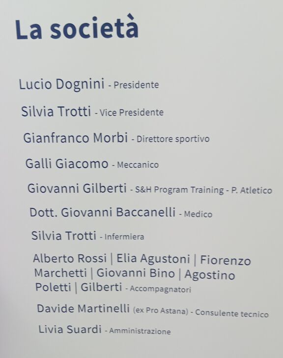 Un progetto di passione per il ciclismo è nato in questi mesi a Grumello del Monte raccolto attorno tre protagonisti: Lucio Dognini (Presidente); Silvia Trotti (Vicepresidente) e Gianfranco Morbi (Diesse). Domenica 7 gennaio è avvenuta la presentazione ufficiale alla presenza dell’amministrazione comunale rappresentata dall’Assessore allo sport Lino Brevi, di Stefano Pedrinazzi presidente FCI Lombardia, di Pierangelo Cristini (tecnico nazionale Juniores), del professionista Davide Plebani, di Samuele Alari, di Alessandro e Paolo Guerciotti per la fornitura delle bici, di tutto lo staff dirigenziale e tecnico e con una nutrita partecipazione di parenti, amici e appassionati che ha affollato il Palafeste di Grumello.