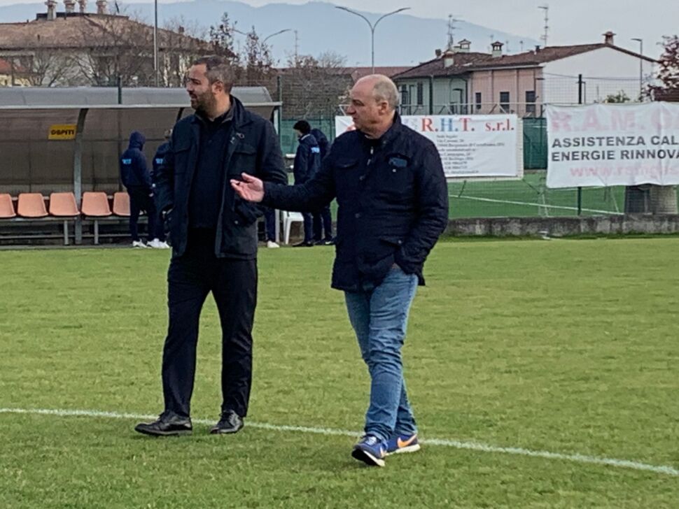 Giuseppe Pardeo, direttore generale biancoazzurro (nella foto sotto con Di Blasio), esprime le sue sensazioni: “Usciamo con un pareggio dalla semifinale di andata contro il Cast Brescia giocata su un campo difficile. Il nostro avversario è una squadra di vertice del girone C. Sicuramente avemmo potuto raccogliere qualcosa in più, ma pecchiamo di poca lucidità sotto porta. E’ inutile pensare al ritorno di coppa: prima dobbiamo affrontare l’ultima giornata del girone d’andata del campionato. Cerchiamo di recuperare le energie e domenica mi aspetto una grande prova da parte di tutti e un pronto riscatto dei nostri attaccanti, che possano trovare fin da subito la via del gol”.