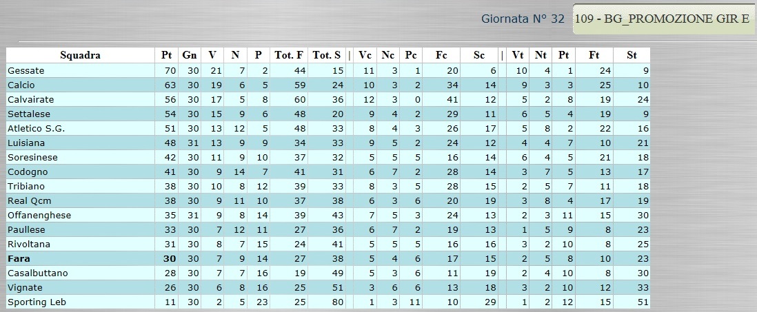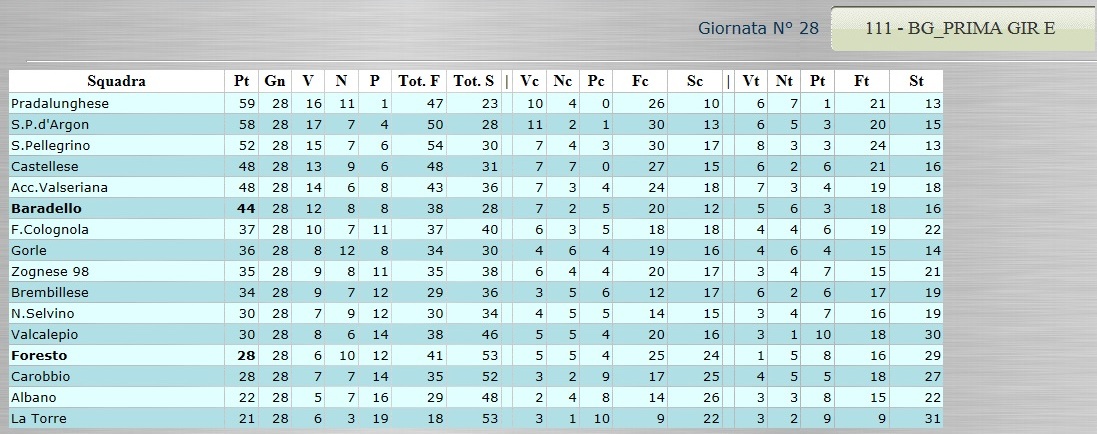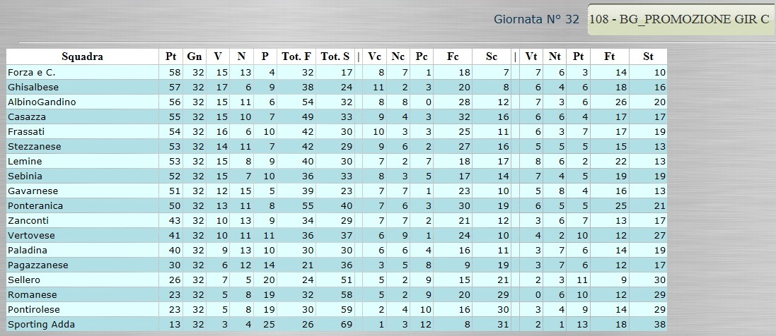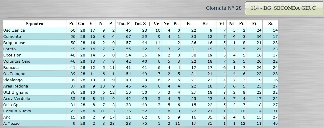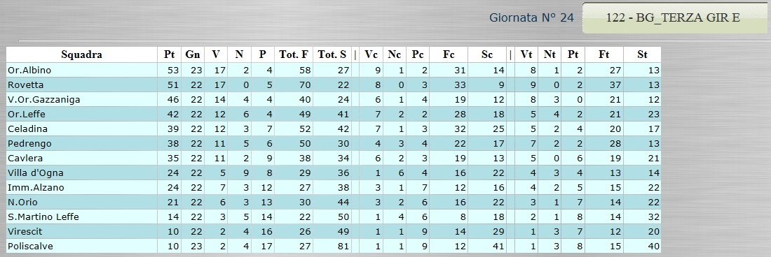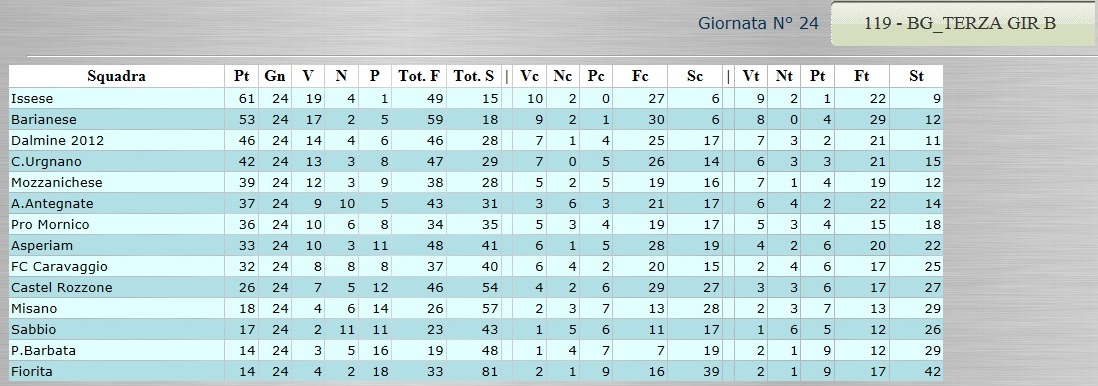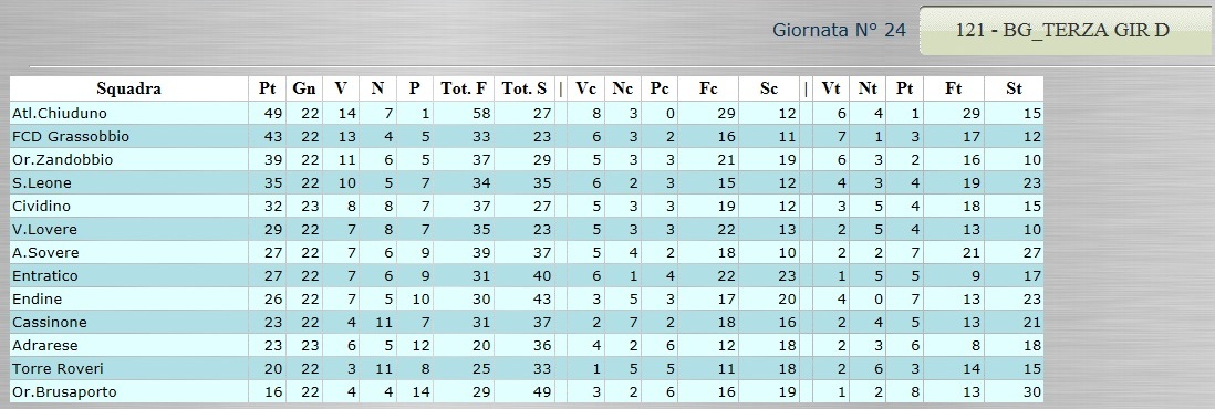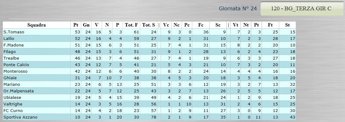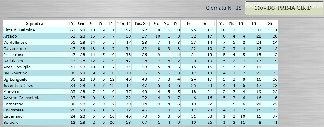 Tutte le classifiche analitiche dalla Serie D alla Terza Categoria 12 Aprile, 2015 CLICCA SULLA CLASSIFICA CHE TI INTERESSA PER VISUALIZZARLA AL MEGLIO