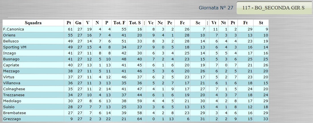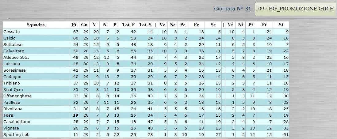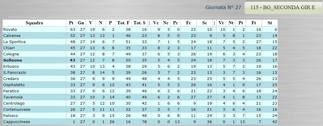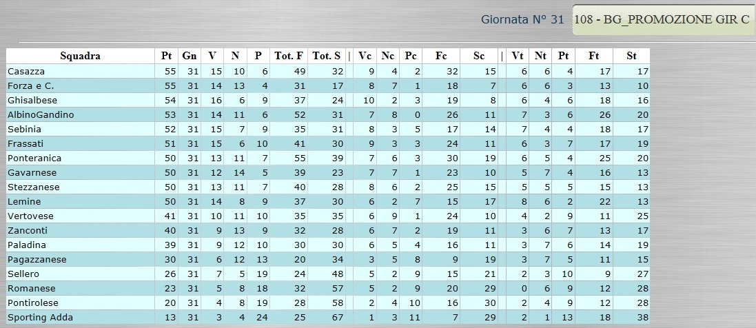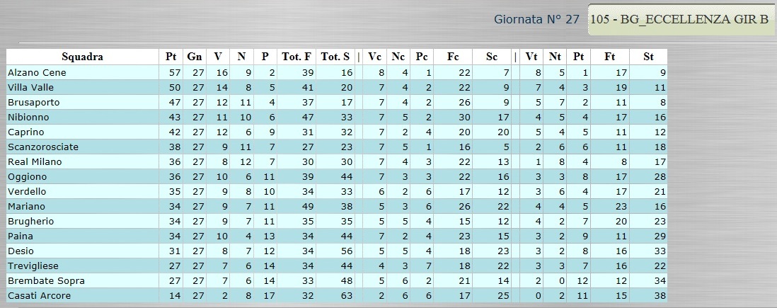 Tutte le classifiche analitiche dall’Eccellenza alla Terza. Ancora bagarre nel girone C di Promozione 6 Aprile, 2015 CLICCA SULLA CLASSIFICA PER VISUALIZZARLA AL MEGLIO!