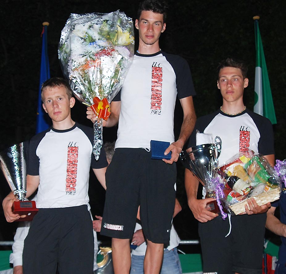 Bergamo – Serata di festa per l’Uc Bergamasca 1902 Astro Semperlux che ieri sera ha messo a segno una bellissima tripletta nella Notturna di Meda (Monza Brianza) abbinata al 2° Trofeo Sergio Colombo a.m. con il successo del bergamasco Mario Meris davanti ai compagni di squadra Edoardo Maffei, secondo, ed Andrea Cortinovis, terzo (nella foto Rodella, i tre sul podio).