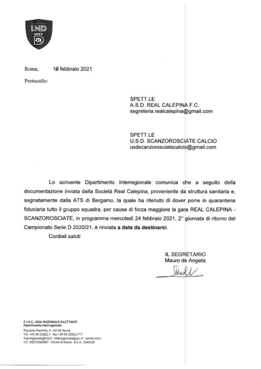 Di seguito il comunicato ufficiale della LND: