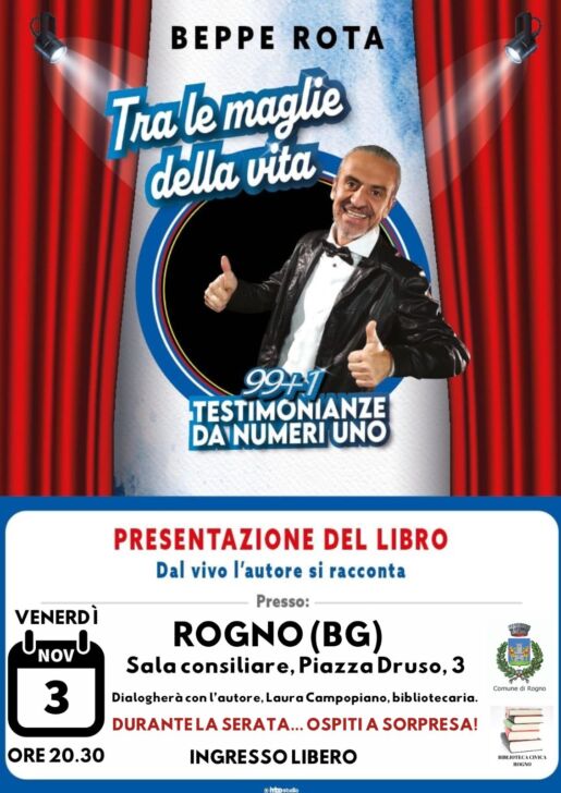 Beppe Rota, noto collezionista di maglie, sta promuovendo il proprio libro: “Tra le maglie della vita, novantanove più uno testimonianze da numeri uno”. Una raccolta di testimonianze di novantanove calciatori diversi che hanno calcato anche i campi più prestigiosi d’Europa. La prossima tappa si svolgerà venerdì 3 novembre alle 20.30 nella Sala Consiliare di Rogno, situata in piazza Druso 3. A condurre la serata ci penserà la bibliotecaria Laura Campopiano. La partecipazione all’evento sarà gratuita e, come preannuncia l’autore, ci sarà l’intervento di ospiti a sorpresa. Beppe Rota continua a sorprendere con una sfilza di appuntamenti e non sembra essere intenzionato a fermarsi. La prefazione dello storico telecronista Bruno Pizzul e i complimenti di molti personaggi illustri del mondo dello sport, tra cui Giovanni Malagò, confermano e ripagano il lavoro del vulcanico bergamasco. I numerosi appuntamenti per divulgare la raccolta al pubblico non mancano e sono un’importante rampa di lancio in vista delle future pubblicazioni per poter completare la trilogia di racconti e testimonianze di calciatori e professionisti.